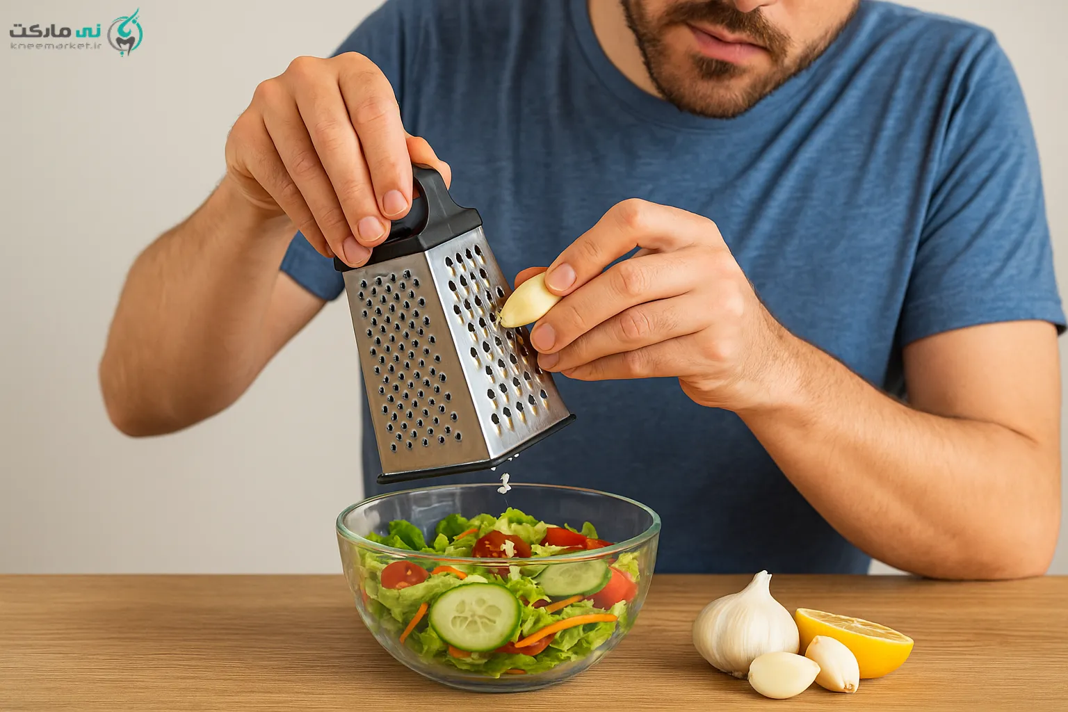 - خرد کردن یا له کردن سیر و افزودن به سالاد یا غذا پس از پخت.