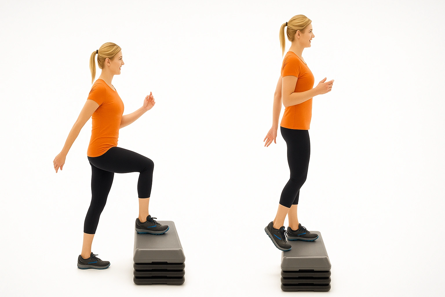 روی یک پله کوتاه بروید و پایین بیایید، پاها را جابهجا کنید. این تمرین قدرت پا را افزایش میدهد و توانایی کنترل زانو در فعالیتهای روزمره را بهتر میکند.