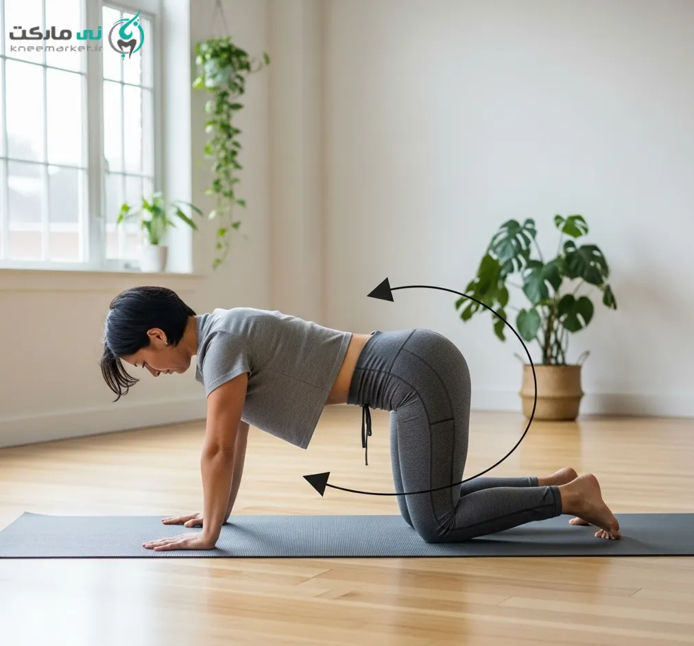 - حرکات چرخشی لگن برای تحریک روده و کاهش فشار کمر