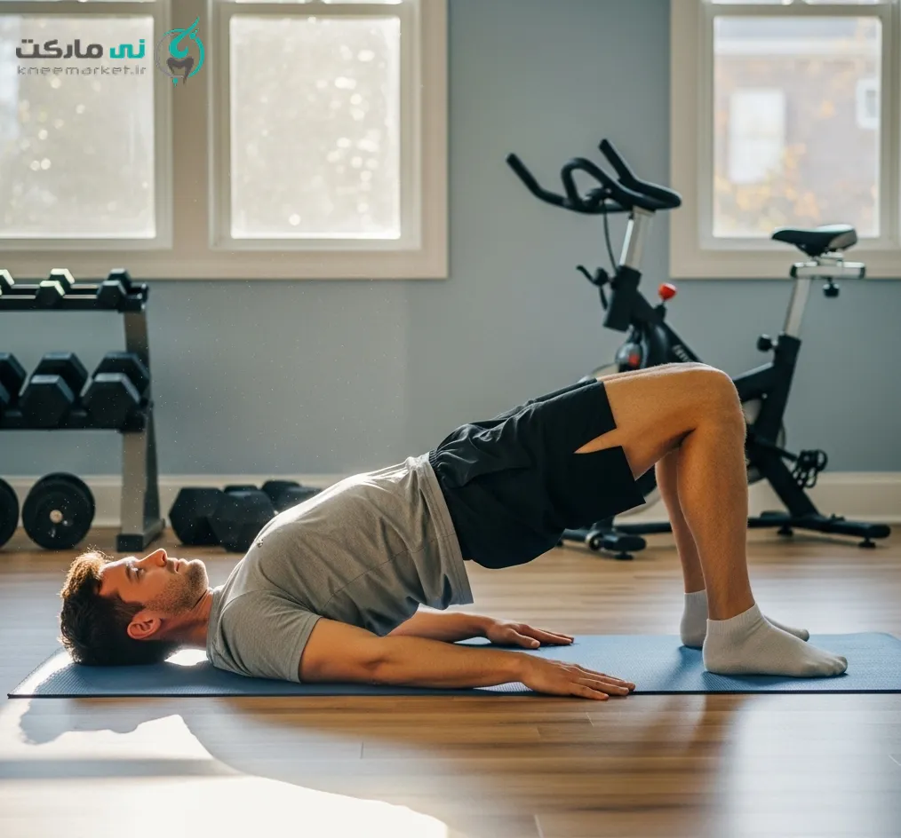 - تمرینات پل (Bridge) برای تقویت عضلات شکم و کمر