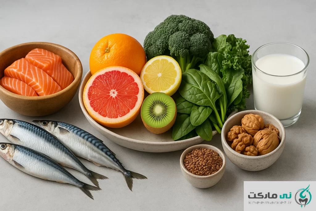 | آرتروز | ماهیهای چرب، لبنیات کمچرب غنیشده، مرکبات، ژلاتین و استخوانپز | کاهش التهاب مفصل تقویت و حفظ استخوانها حمایت از غضروف و بافت مفصلی |