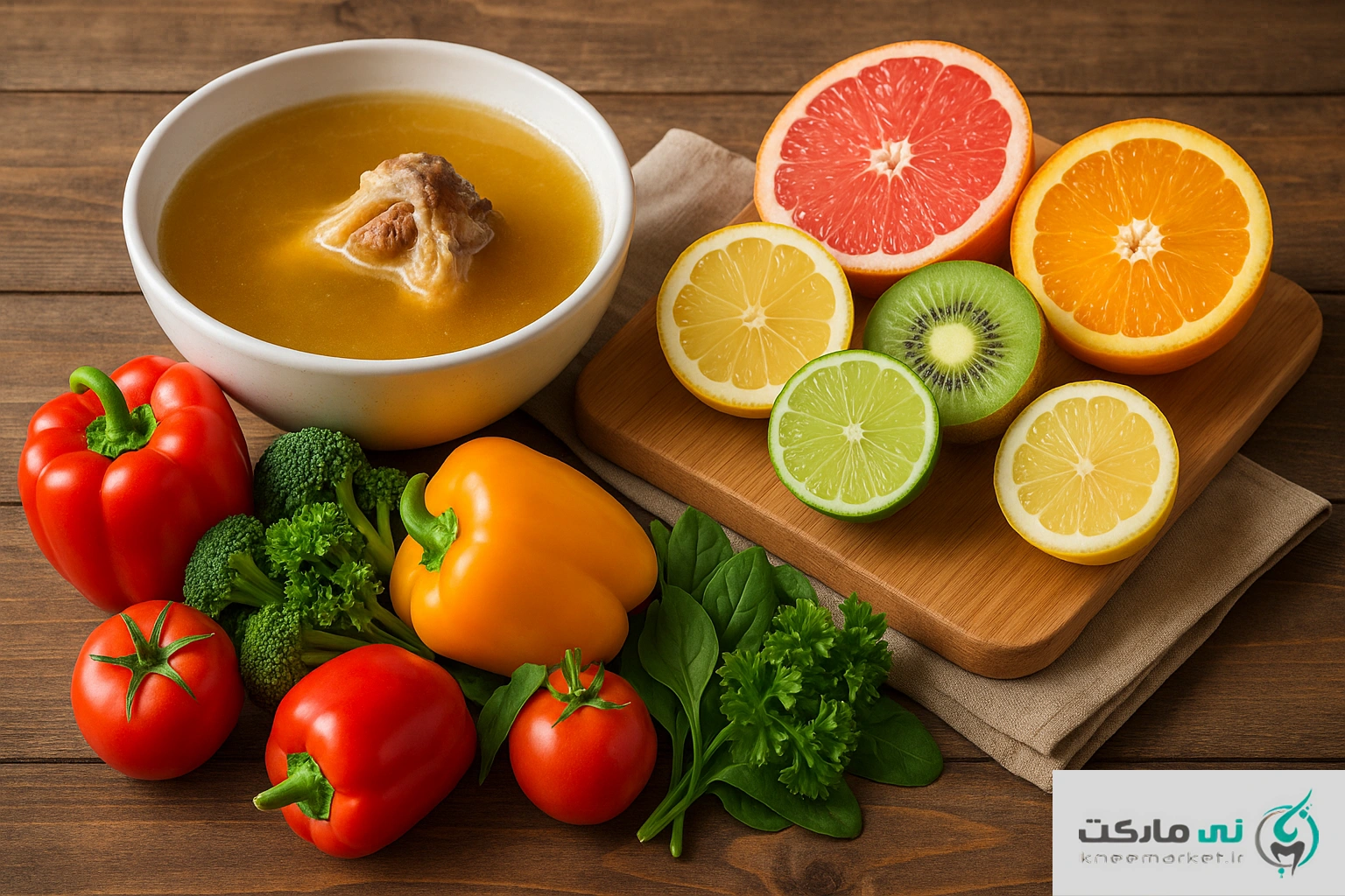 | آسیبهای مکانیکی (پارگی منیسک، رباط) | مرکبات، ژلاتین و استخوانپز، پروتئین حیوانی و گیاهی | حمایت از غضروف و بافت مفصلی تقویت و حفظ استخوانها |