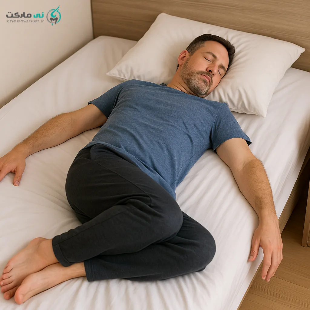 خوابیدن به پهلو یکی از رایجترین و مؤثرترین روشها برای کاهش درد سیاتیک است. قرار دادن یک بالشت بین زانوها باعث حفظ تراز طبیعی ستون فقرات میشود و فشار روی لگن و عصب سیاتیک را کاهش میدهد. این روش به ویژه برای افرادی که دردشان به سمت پایین کمر و پاها منتشر میشود، توصیه میشود.